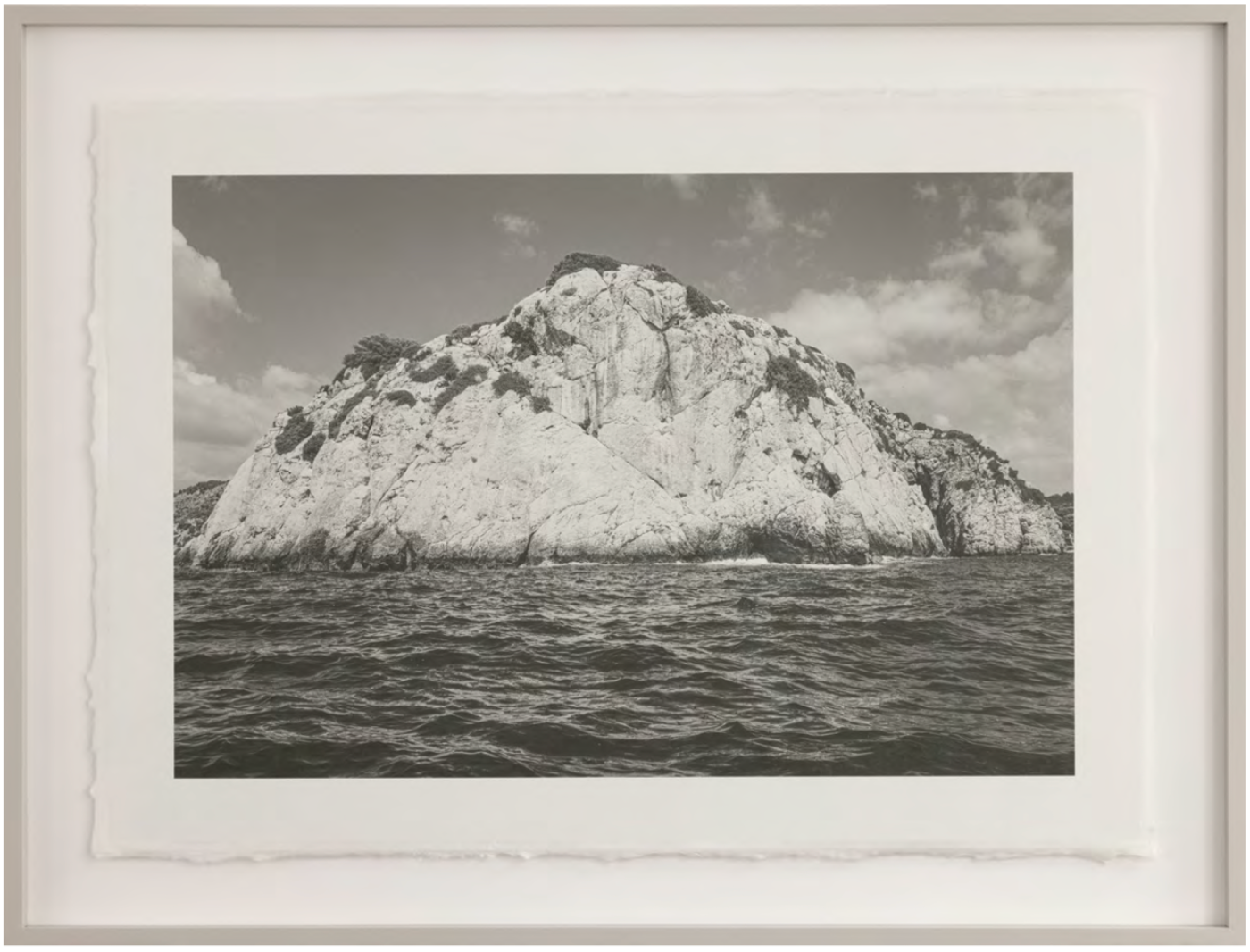 Die Arbeiten - in feiner Schwarzweißsprache - umfassen Küstenlinien, Felsformationen, Felder und architektonische Fragmente. Die Motive erscheinen klar und strukturiert, sind jedoch so gefasst, dass sie zeitlich und räumlich entrückt wirken. Die analoge Anmutung, feine Körnung und reduzierten Kontraste schaffen eine Atmosphäre der Verlangsamung und laden dazu ein, Wahrnehmungsräume jenseits des Offensichtlichen zu erkunden. Dabei erkundet Ingrid Hertfelder das fünfte Element: Akasha – den Äther. In der hinduistischen Philosophie steht er für das Unsichtbare, das alles Verbindende – für einen Raum, der nicht gesehen, sondern nur erspürt werden kann. Gedruckt auf zartes Awagami-Washi-Papier, entfalten die Fotografien eine besondere Materialität, die durch die weichen Ränder des Papiers betont wird. Schwebend gehalten von feinen Nadeln in maßgefertigten Holzrahmen und ergänzt durch eine kleine Kugel aus 18-karätigem Gold, entsteht ein sensibles Spannungsfeld zwischen Materialität und Immaterialität – ein Spiel mit dem Sichtbaren und dem Spirituellen im Kleinsten.