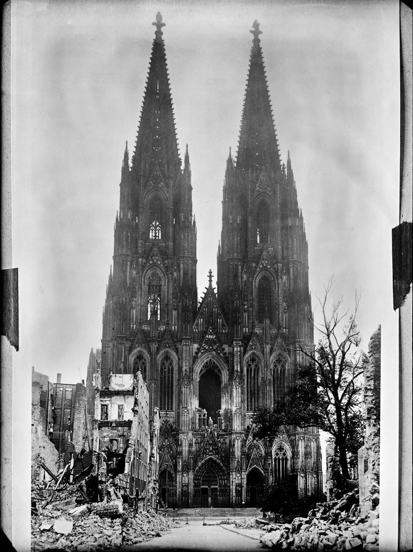 Bilder von Zerstörung und Wiederaufbau des Kölner Doms, 1945-1949